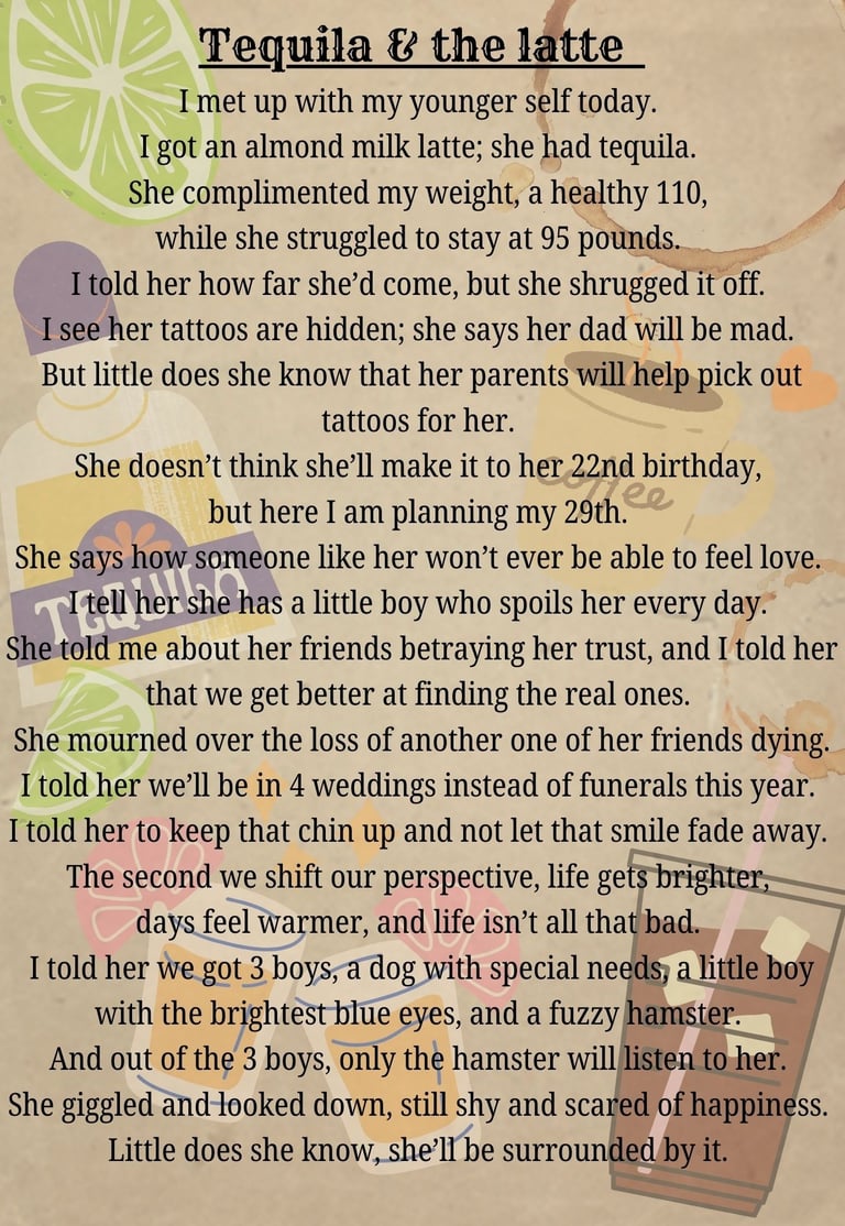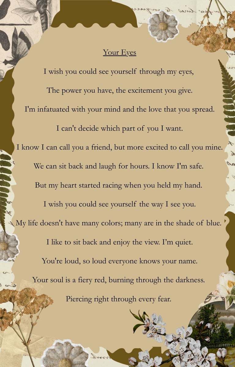 "You write like someone who has lived through something and come back with perspective. Your poems feel like journal entries that decided to become brave."